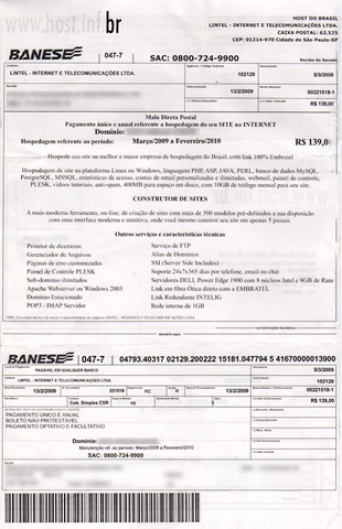 Mais uma vez a picaretagem e a grande certeza de impunidade faz com que uma empresa envie boletos bancários referente à serviços de hospedagem de sites não solicitados através de dados obtidos no Registro.BR, o órgão responsável pelo registro de domínios no Brasil.